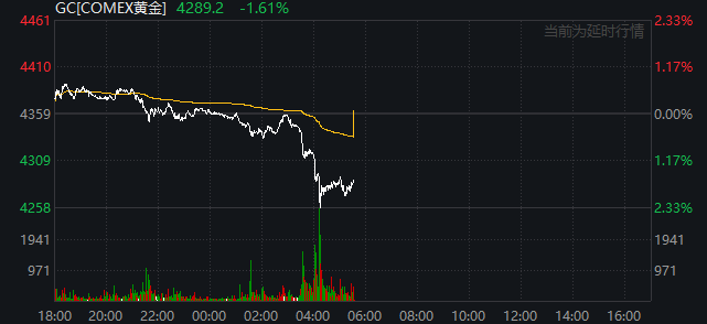 北京時間10月21日午后,國際金價盤中突然跳水,現貨黃金、期貨黃金盤中均跌超2%。截至發稿,倫敦金現跌1.98%,報4269.526美元/盎司;COMEX黃金跌1.61%,報4289.2美元/盎司。