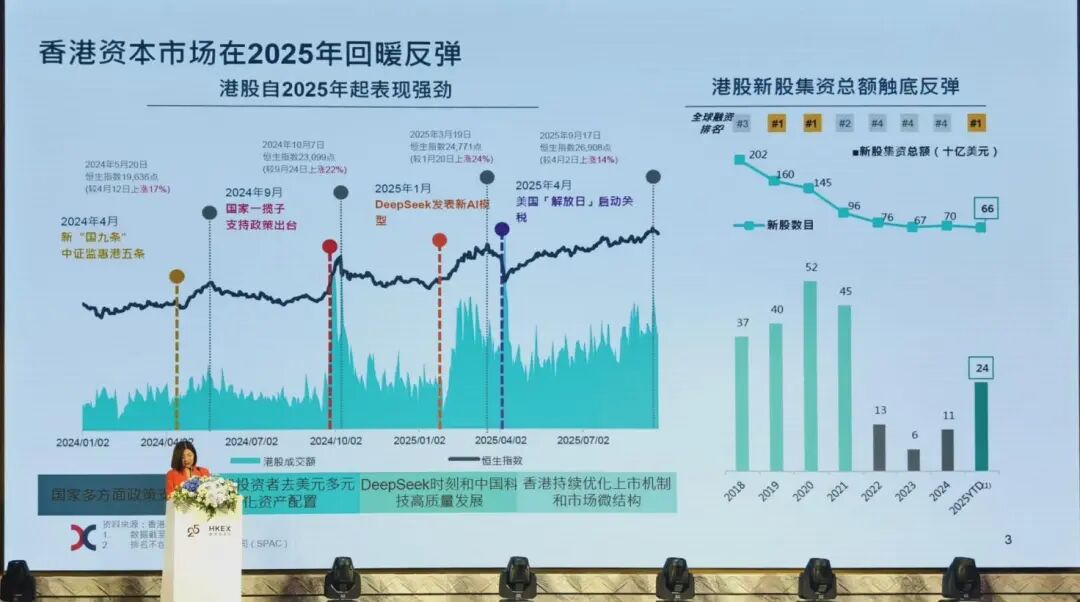 “伴隨國家多方面的政策支持,關稅影響下全球投資者去美元化并尋求多元資產配置,到Deepseek引領的科技浪潮,以及香港持續優化上市機制和市場微結構,港股市場在今年回暖反彈。”陳翊庭說。