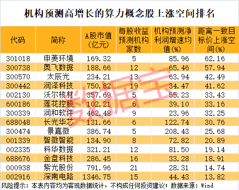 上漲空間較大的還有奧飛數(shù)據(jù)、太辰光、潤澤科技、沃爾核材、蓮花控股等。